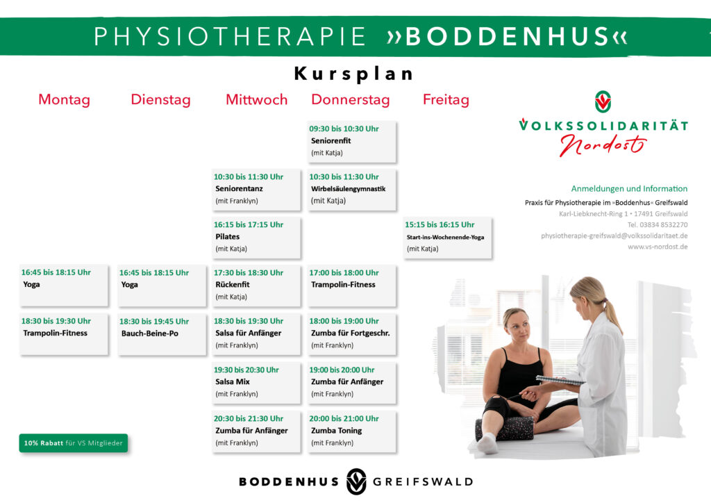 Herzlich willkommen in unserer Praxis für Physiotherapie im „Boddenhus“ Greifswald